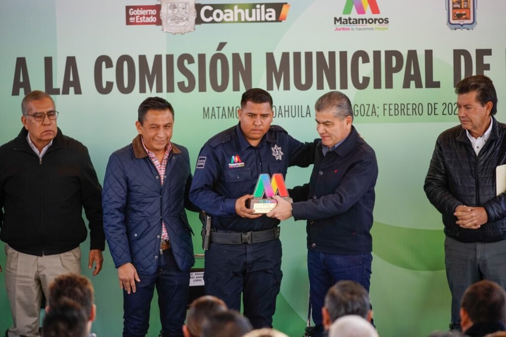 En su mensaje, el Mandatario estatal compartió que la coordinación con el Ayuntamiento de Matamoros ha hecho posible que más acciones se realicen en beneficio de la población, y que en las últimas semanas se ha entregado equipamiento, patrullas y capacitación, por lo que hoy Coahuila se distingue porque sus elementos están acreditados.