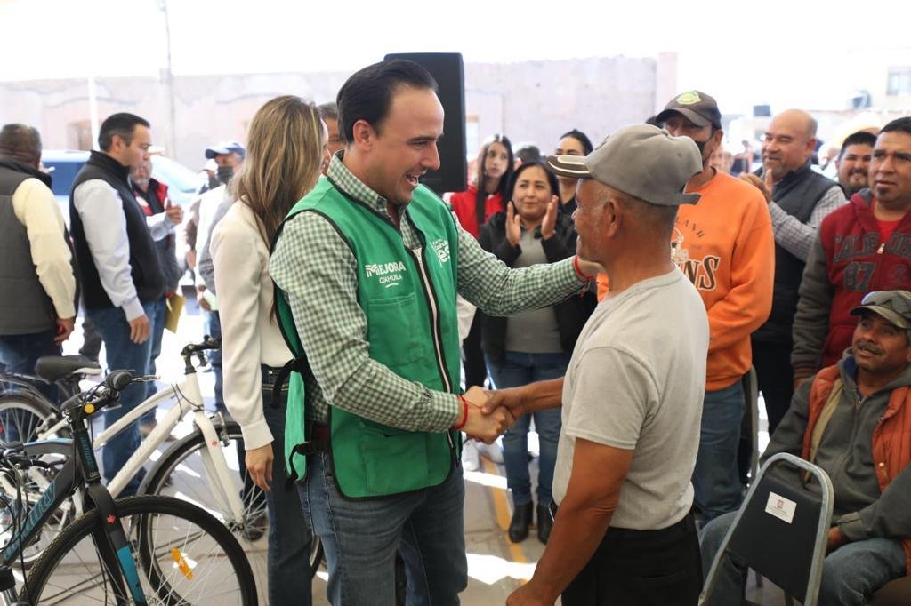 Francisco I. Madero, Coah.- Al realizar la entrega de cientos bicicletas en el área rural de Francisco I. Madero, como parte de las acciones del programa Mejora Coahuila en conjunto con la sociedad civil organizada, el Secretario de Inclusión y Desarrollo Social, Manolo Jiménez Salinas, resaltó que el trabajo en equipo logra grandes resultados y se confirma la gran estrategia del gobernador Miguel Riquelme en favor de todas y todos.