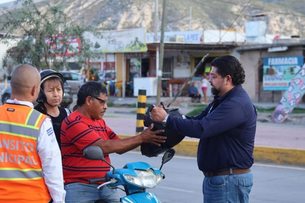 Torreón, Coahuila.- Durante el operativo “Conduce Seguro”, implementado por la Dirección General de Vialidad y Movilidad Urbana, se entregaron cascos certificados a motociclistas que ya contaban con licencia vigente, placas en regla y que previamente habían sido capacitados en conducción defensiva y preventiva. La medida busca reforzar la cultura vial y apoyar la economía de quienes se desplazan en este tipo de vehículos, incentivando además el cumplimiento de la normatividad.