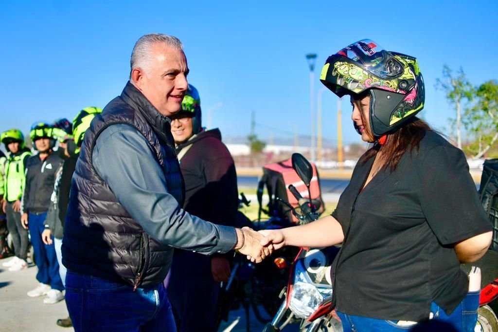 Torreón, Coahuila.- Con una inversión de 171 mil pesos, el alcalde de Torreón, Román Alberto Cepeda González, realizó la entrega de 102 cascos de protección para motociclistas, con el objetivo de garantizar su Seguridad Vial mientras realizan su trabajo.