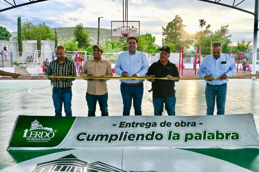 Lerdo, Durango.- Como una de sus últimas acciones en materia de obra pública, el Alcalde de Lerdo, Homero Martínez Cabrera, entregó a la comunidad de San Carlos el nuevo Complejo Deportivo San Carlos, un espacio destinado al deporte, la recreación y la convivencia familiar.
