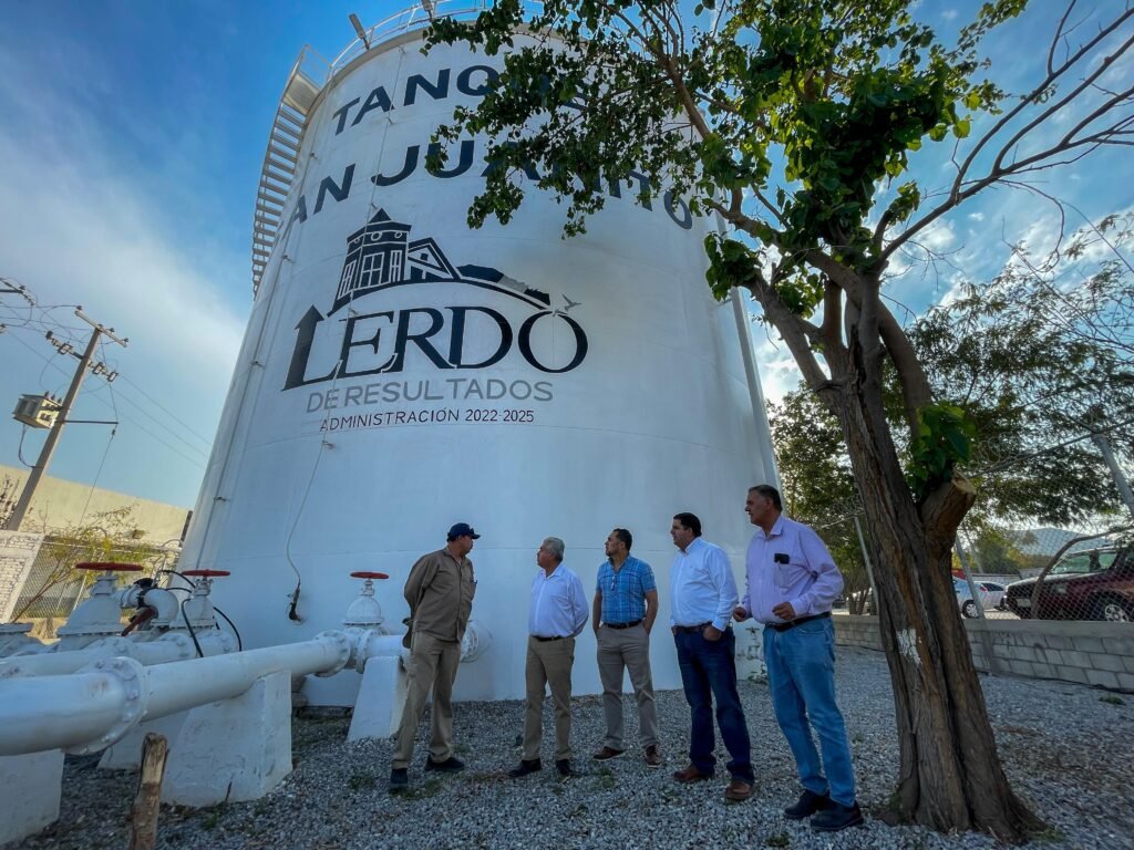 Lerdo, Durango.- El Presidente Municipal, Homero Martínez Cabrera, encabezó la entrega de la rehabilitación de cuatro mega tanques de almacenamiento de agua en la zona urbana de la ciudad. Estos mega tanques garantizan el abastecimiento en diversos sectores y permiten que la población no se vea afectada en situaciones de emergencia.