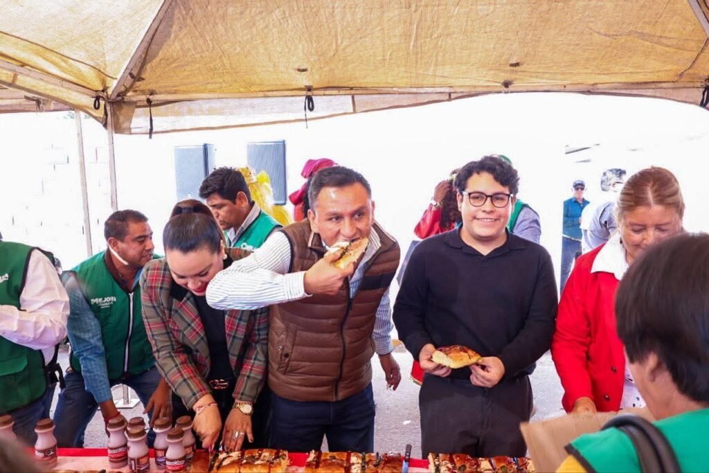 Matamoros, Coahuila.- Se llevó a cabo la entrega de Rosca de Reyes y chocolate en la plaza Principal Benito Juárez, se tiene programado seguir con esta actividad en los ejidos, apoyados por otras dependencias municipales.