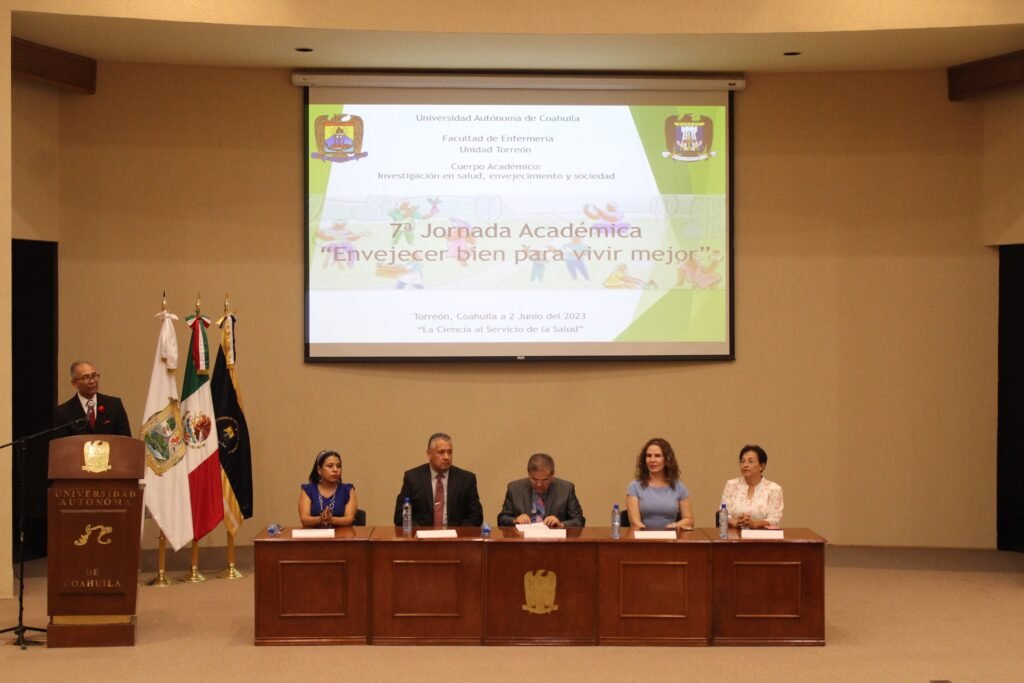 Torreón, Coahuila.- La Facultad de Enfermería Unidad Torreón de la Universidad Autónoma de Coahuila, a través del Cuerpo Académico en Formación “Investigación en salud, envejecimiento y sociedad”, llevó a cabo la Séptima Jornada Académica “Envejecer bien para vivir mejor”, en el Auditorio “Braulio Fernández Aguirre” de Ciudad Universitaria de Torreón.