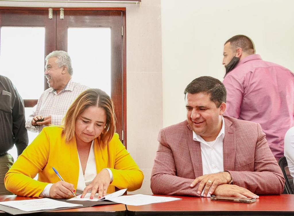 El Secretario del Ayuntamiento Gerardo Lara Pérez, la directora del Sistema para el Desarrollo de la Familia Olivia Ivonne Gutiérrez García, y el titular del Sistema de Agua Potable y Alcantarillado de Lerdo José Ignacio Ramírez Ontiveros, estuvieron presentes en la firma.