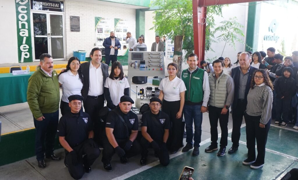 Iniciando en el CONALEP 1, Mejora Coahuila entregó módulos de prácticas de control y electroneumática, diseñados para impulsar la formación técnica de las y los estudiantes, además de que se otorgó al plantel la certificación ISO 9001:2015, que avala sus procesos bajo estándares internacionales de calidad.