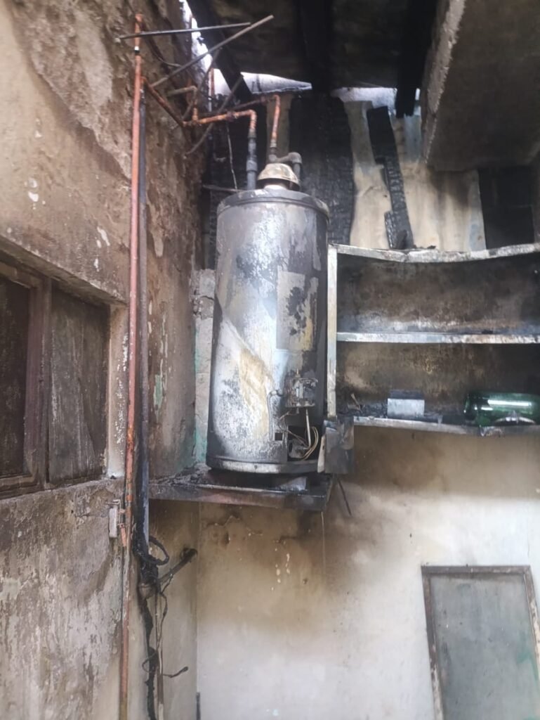 Las llamas fueron provocadas por el piloto del calentador de agua, lo que provocó daños en el área donde también se encontraba el hidroneumático y la lavadora; además de afectaciones en el techo de lámina y en las ventanas una habitación contigua.