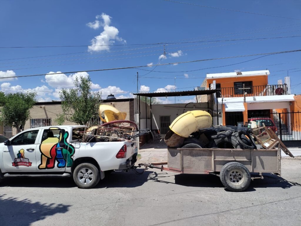 San Pedro, Coahuila.- Con el respaldo de vecinos de la colonia Ampliación La Trinidad, el Gobierno Municipal, a través del Departamento de Salud, llevó a cabo una jornada de descacharrización que permitió retirar gran cantidad de objetos en desuso, reduciendo focos de infección y riesgos para la salud.