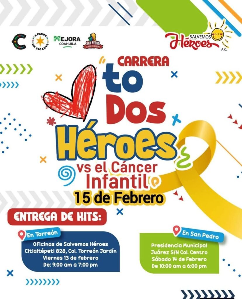 San Pedro, Coahuila.- Con el objetivo de fomentar la actividad física, la convivencia familiar y apoyar una noble causa, el Gobierno Municipal, presidido por la alcaldesa Brenda Cecilia Güereca Hernández, lanzó una dinámica especial para regalar 30 inscripciones a quienes deseen participar en la carrera “Todos héroes contra el cáncer infantil”.