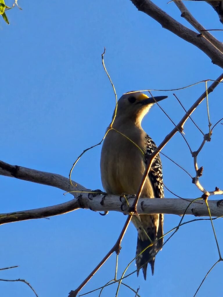 Durante la primera jornada de observación se identificaron diversas especies de relevancia para el ecosistema local, entre ellas el Carpintero Cheje (Melanerpes aurifrons); el Pinzón Mexicano, especie nativa que contribuye al equilibrio ambiental de la región; y el Perico Monje, catalogado como especie introducida que ha logrado adaptarse al entorno urbano.