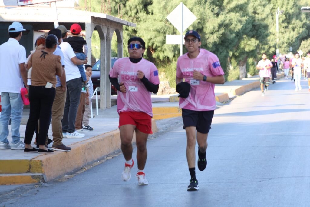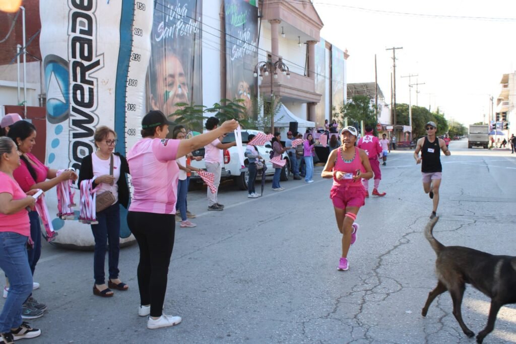 San Pedro, Coahuila.- Con gran entusiasmo y espíritu solidario se realizó carrera “Kilómetros Rosas contra el Cáncer de Mama”, evento encabezado por la alcaldesa Brenda Cecilia Güereca Hernández, quien dio el banderazo de salida a los participantes que caminaron, trotaron y corrieron cinco kilómetros en una emotiva jornada de concientización.