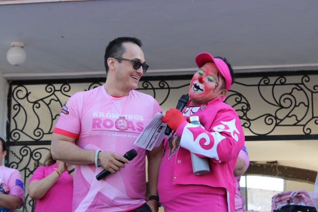 El recorrido inició en las instalaciones del Hospital General, atravesó diversas calles de la ciudad y concluyó frente a la Presidencia Municipal, donde los participantes formaron un lazo humano en conmemoración del «Día Internacional de la Lucha Contra el Cáncer de Mama».
