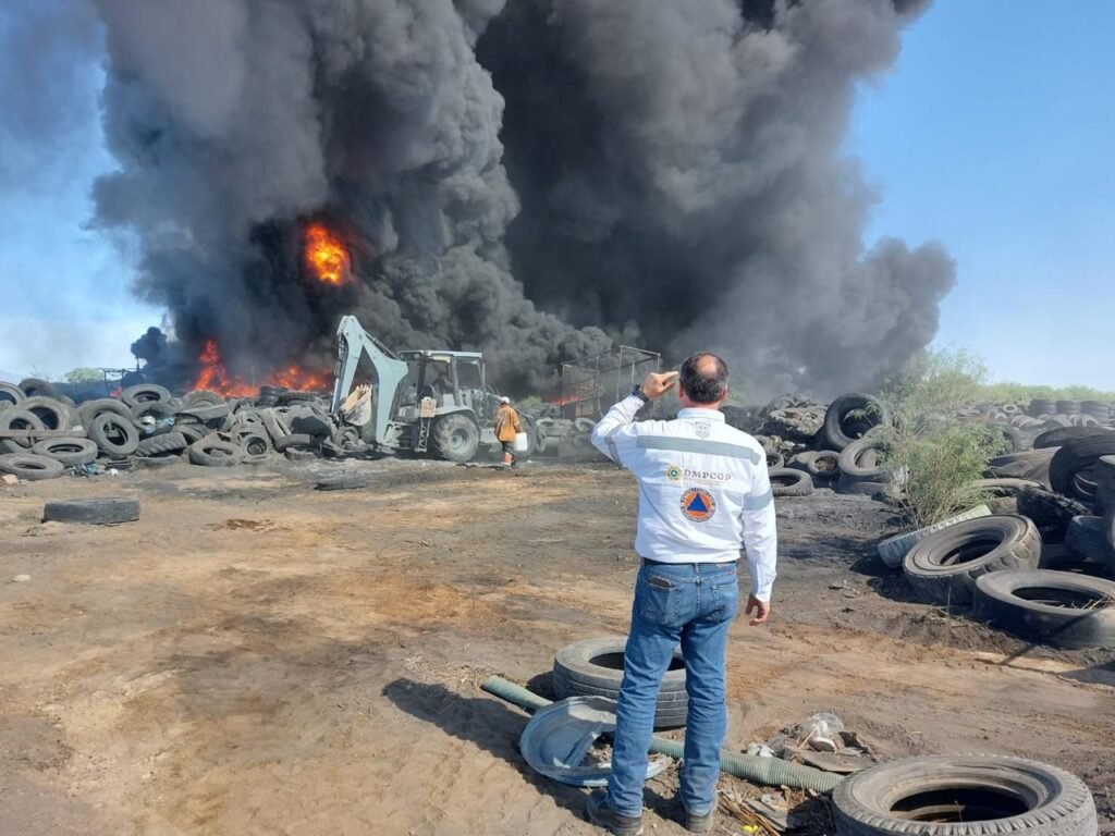 El director de la dependencia, Alfonso Javier Mijares, informó que hasta el momento no existe afectación directa a comunidades cercanas, al tratarse de un terreno propiedad de una empresa dedicada a la recuperación de materiales derivados de llantas.