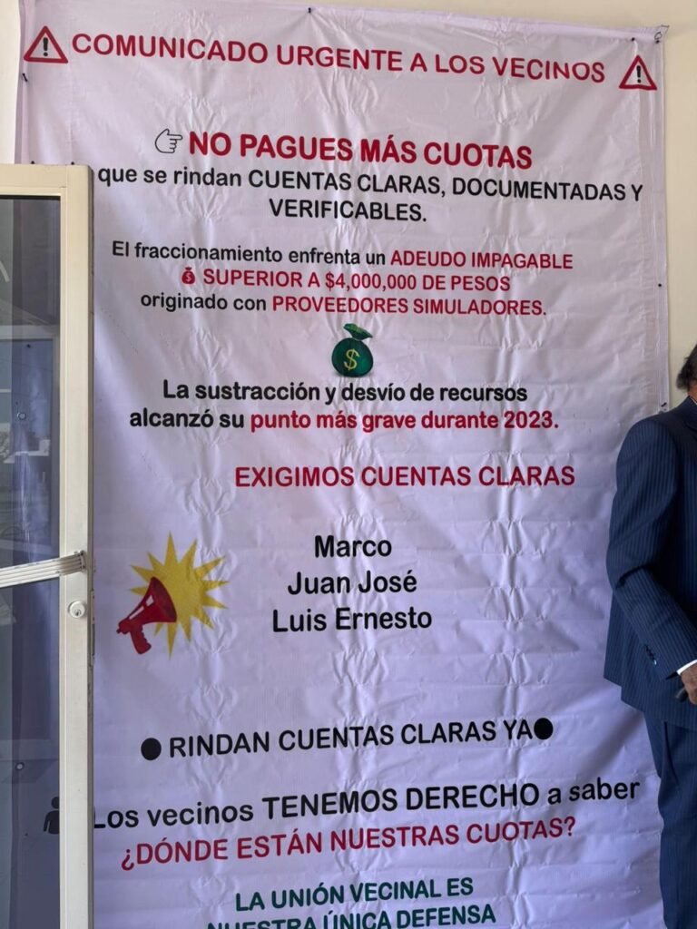 Que se rindan cuentas claras, documentadas y verificables. El Fraccionamiento enfrenta un adeudo impagable superior a $4,000,000.00 (son cuatro millones de pesos) originado con proveedores simuladores.