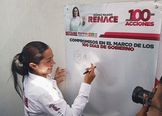 Este martes, a un día de concluir las campañas electorales, Betzabé Martínez Arango, candidata de la coalición “Juntos hacemos historia”, firmó sus compromisos para sus primeros 100 días de Gobierno Municipal.