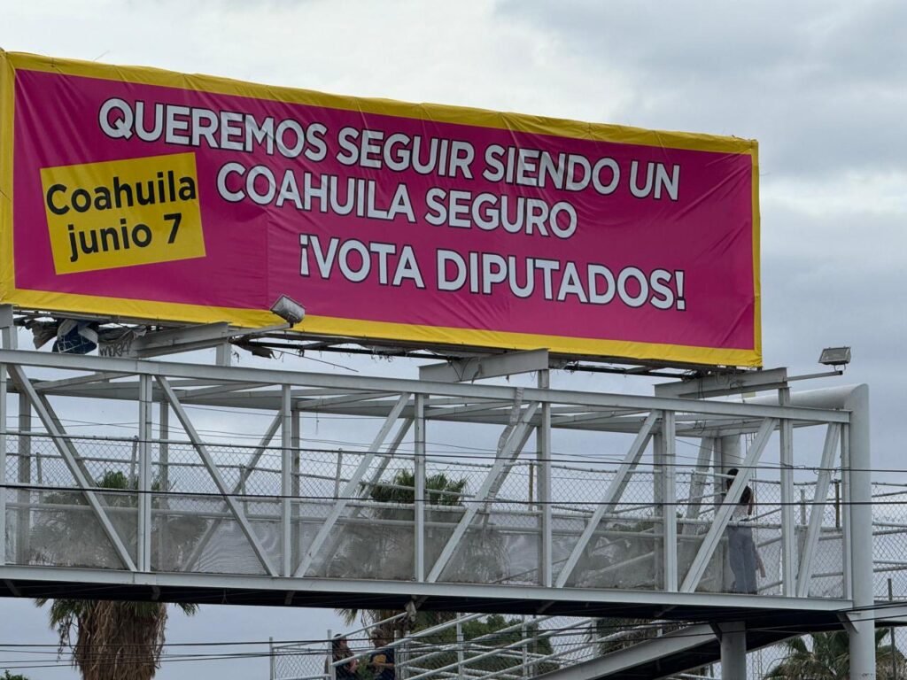 Lo anterior ha quedado plasmado en algunos anuncios espectaculares con la leyenda “Queremos seguir siendo un Coahuila seguro. ¡Vota diputados! Coahuila, junio 7”.