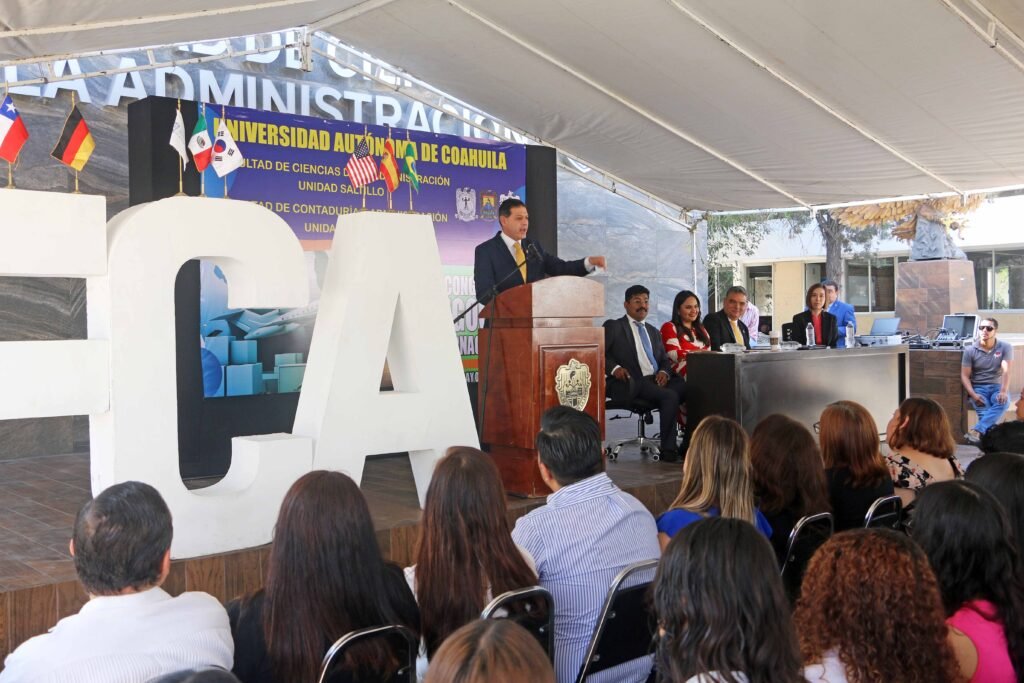 Saltillo, Coahuila.- La Facultad de Ciencias de la Administración (FCA) de Saltillo y la Facultad de Contaduría y Administración (FCA) de Monclova de la Universidad Autónoma de Coahuila, se unieron para inaugurar el Primer Congreso de Negocios Internacionales.