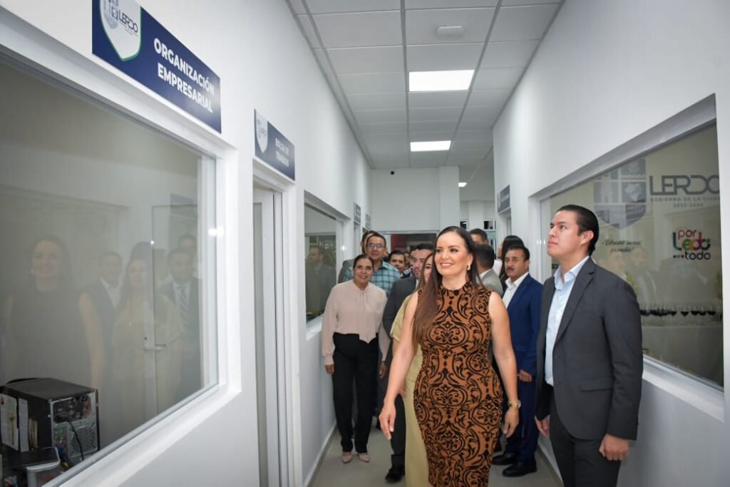 Lerdo, Durango.- En presencia de representantes de diversas cámaras empresariales de la Comarca Lagunera, la Presidenta Municipal Susy Carolina Torrecillas Salazar inauguró las nuevas oficinas de Desarrollo Económico, un espacio que no solo brinda una imagen renovada, sino que también funcionará como facilitador para la atracción de nuevas inversiones en el municipio.