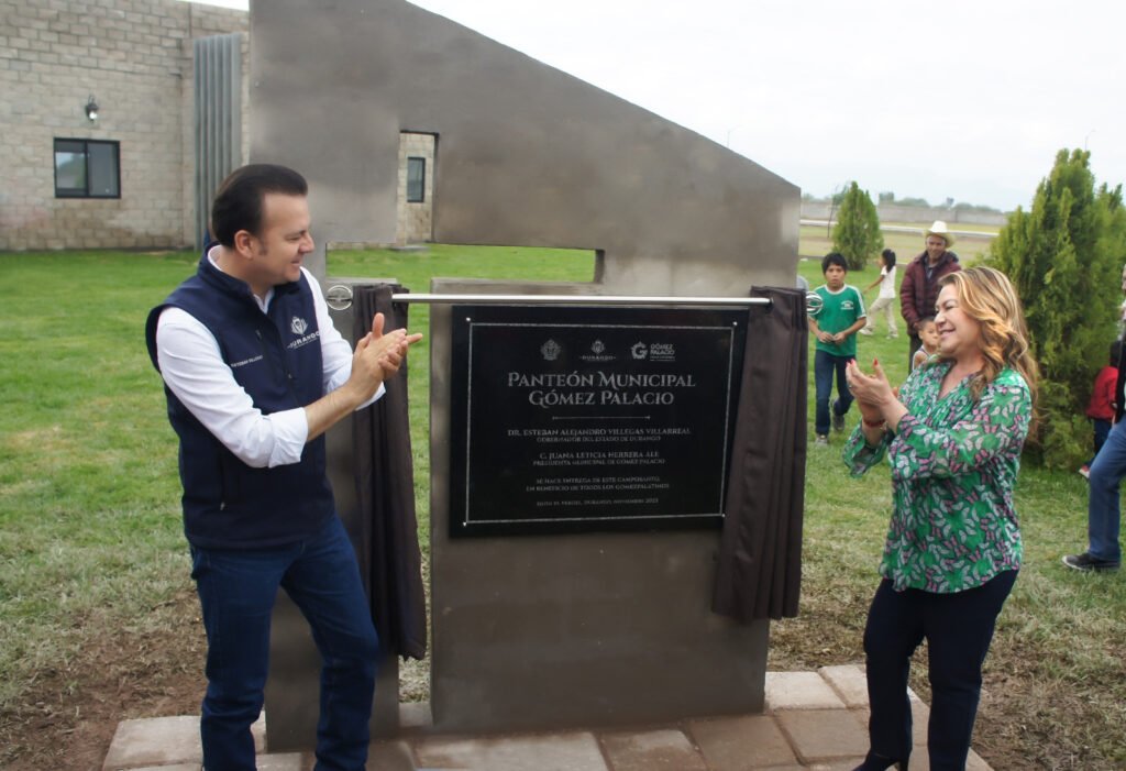Gómez Palacio, Durango.- El gobernador del Estado de Durango, Esteban Villegas Villarreal y la alcaldesa Leticia Herrera Ale, entregaron hoy a la ciudadanía, el nuevo “Panteón Municipal Gómez Palacio”, ubicado en el ejido El Vergel.
