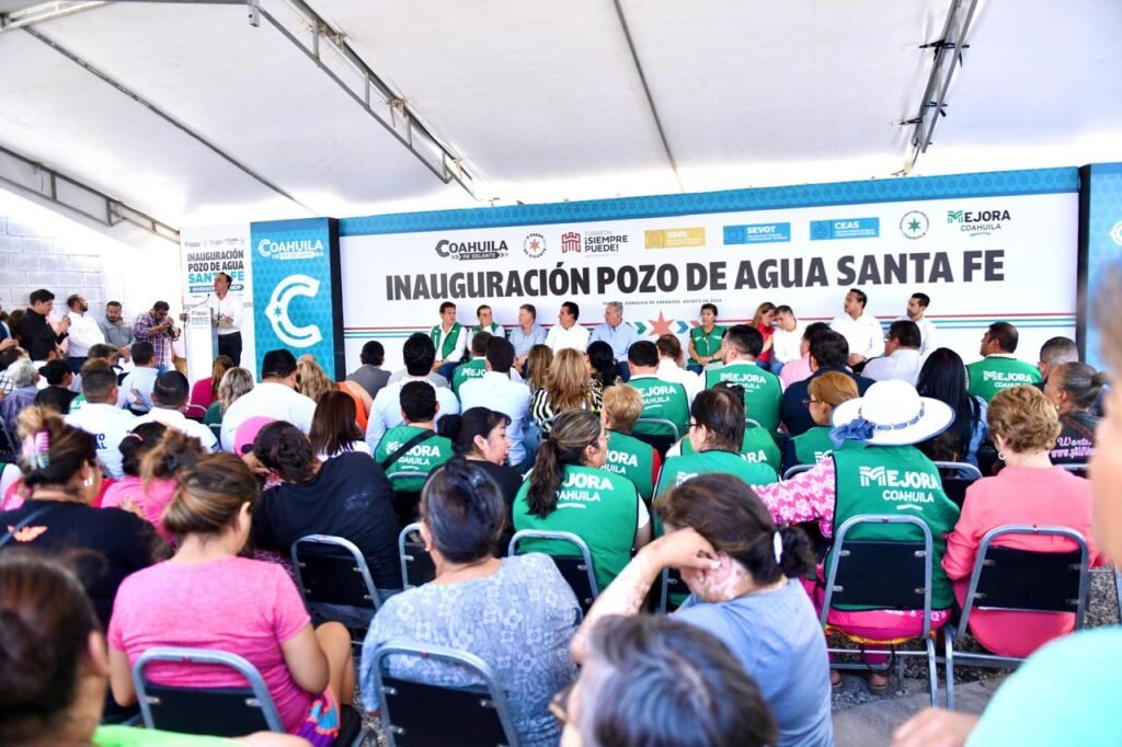 Cepeda González explicó que el pozo Santa Fe es aportación del Gobierno del Estado, y se suma a los 30 pozos perforados por el Municipio, y reforzó su compromiso por seguir trabajando en las obras de pavimentación, recarpeteo, agua y más techumbres en Torreón.