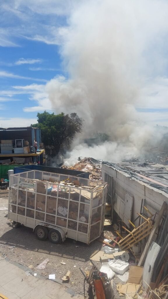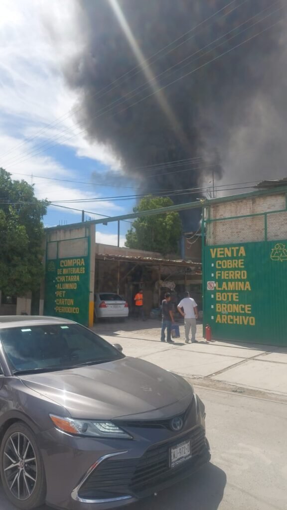 Torreón, Coahuila.- Grandes cantidades de cartón y otros materiales reutilizables fueron arrasados por un voraz incendio que se registró durante la mañana de este lunes en el negocio denominado Recicladora de Metales «El Bosque», en la ciudad de Torreón.