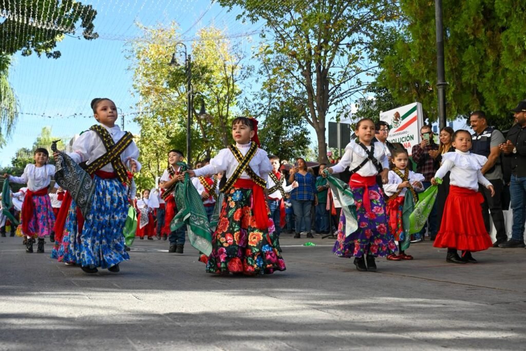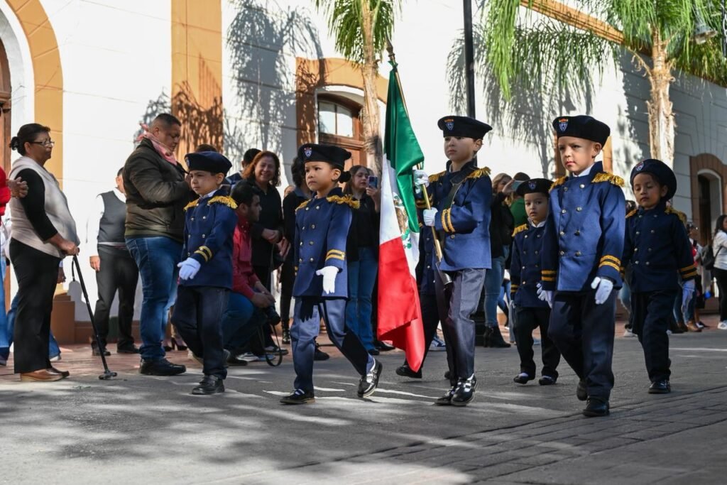 Lerdo, Durango.- Este martes, en el marco del 115 aniversario del inicio de la Revolución Mexicana, niñas y niños de diversos planteles educativos participaron en un colorido desfile por las principales calles de Lerdo.