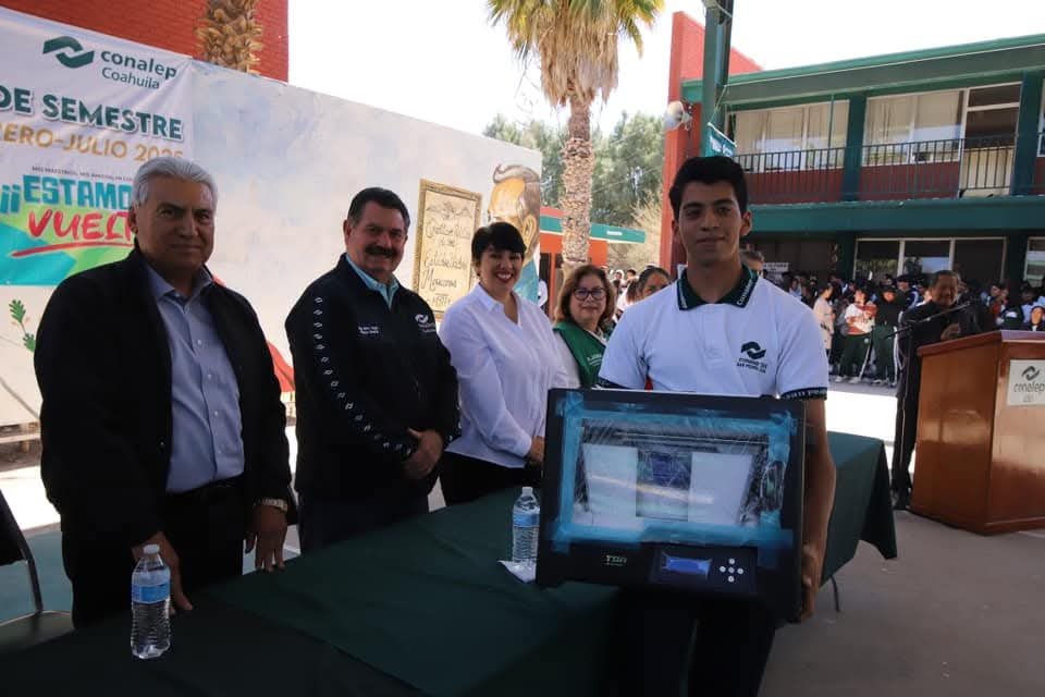 En su participación, Alfo Vega de la Peña detalló que los planteles de CONALEP tienen gran demanda, «pues en los últimos dos años hemos incrementado la matrícula en un 8 por ciento, y gracias al empuje del gobernador Manolo Jiménez Salinas con su proyecto Impulso Educativo Coahuila, este dia estamos haciendo entrega de más de 19 mil 800 libros de texto».