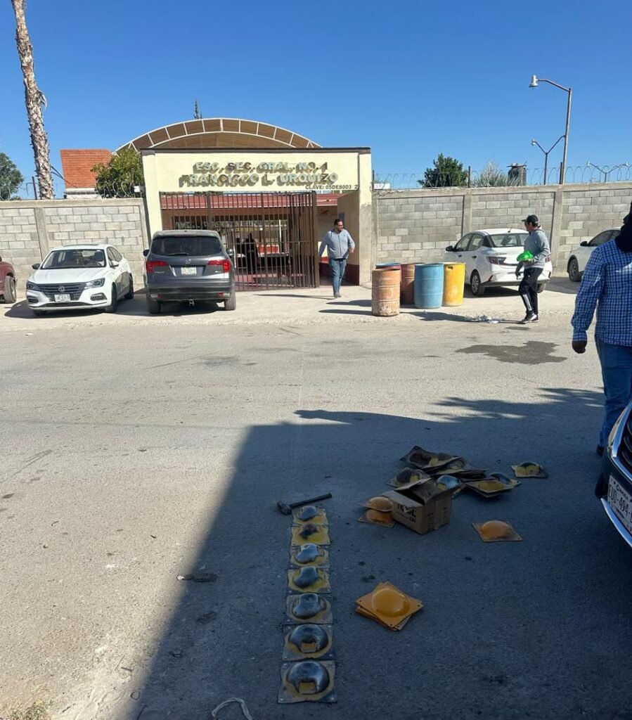 San Pedro, Coahuila.- El Departamento de Mantenimiento Urbano colocó boyas en la Escuela Secundaria “Francisco L. Urquizo”, ubicada en la colonia Las Rosas.