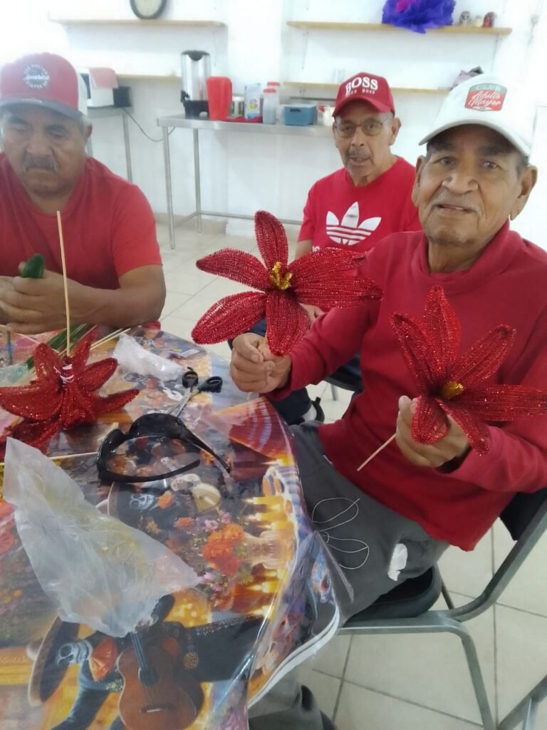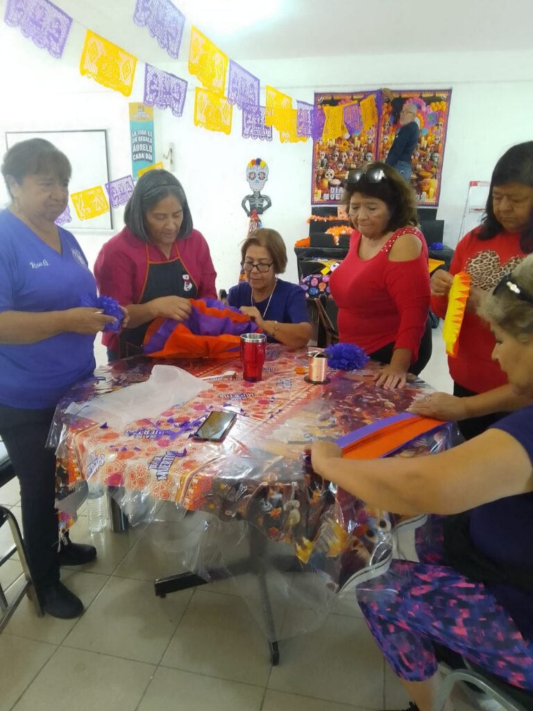 Con entusiasmo y espíritu festivo, las personas mayores participan en la creación de flores, papel picado y otros elementos representativos de esta importante fecha, demostrando que nunca es tarde para disfrutar, compartir y mantener vivas las costumbres mexicanas.