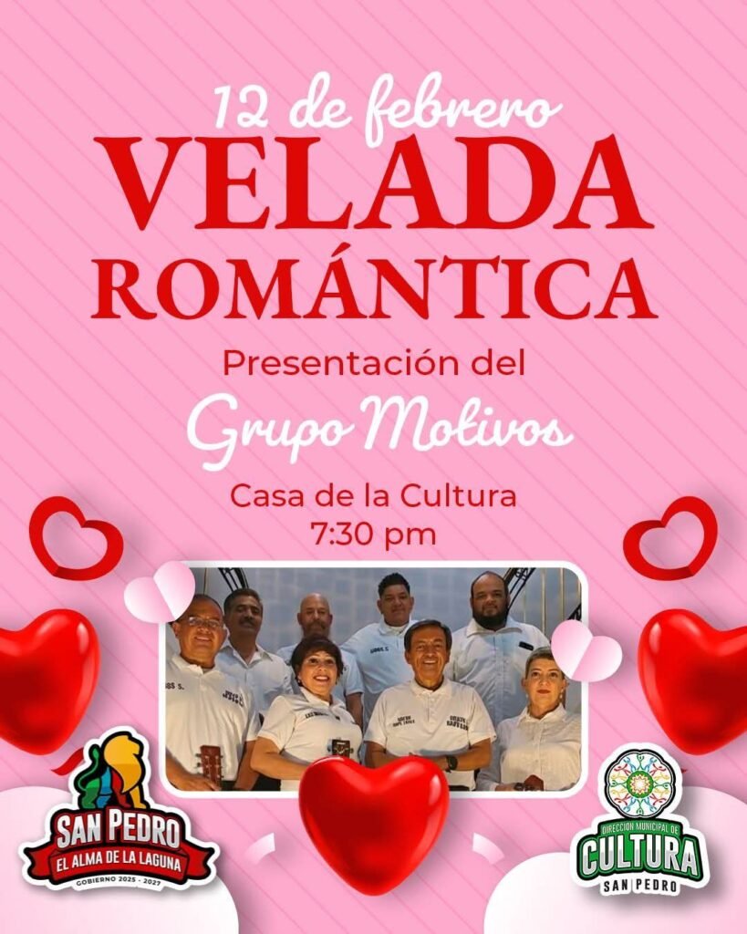 La alcaldesa Brenda Cecilia Güereca Hernández, a través de Cornelio Cepeda Muñoz, director de Cultura, invita a esta celebración que tendrá lugar el próximo jueves 12 de febrero con una velada romántica especialmente preparada para las familias, donde los asistentes podrán disfrutar de la presentación musical del Grupo “Motivos”, en un ambiente lleno de música, alegría y sana convivencia.