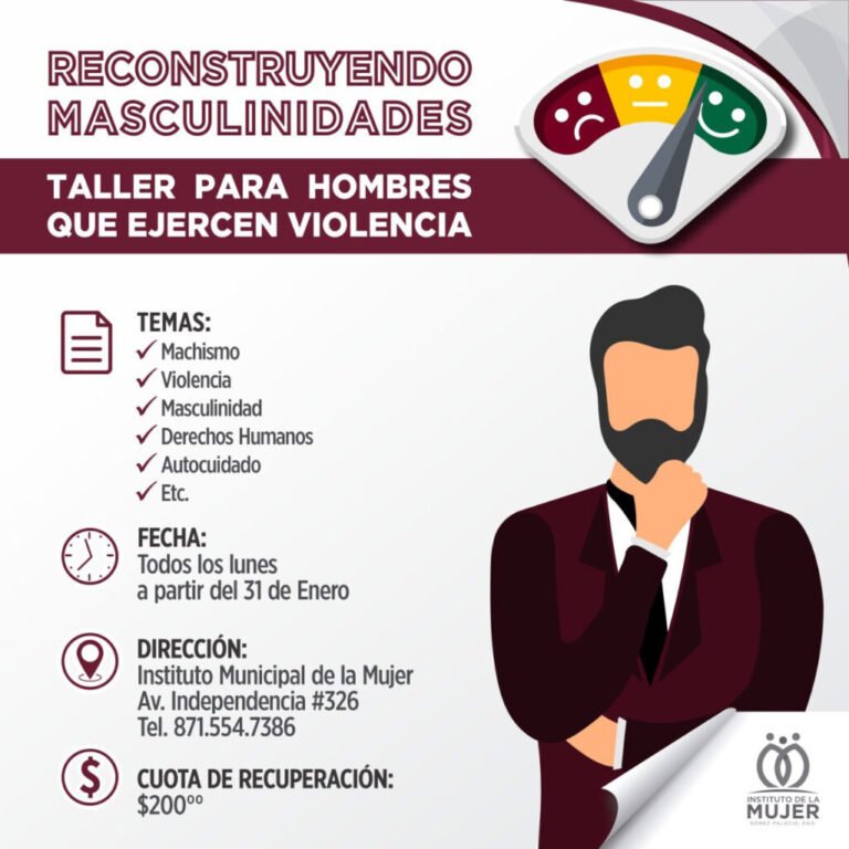 Invita el Instituto Municipal de la Mujer a taller para hombres que generan violencia