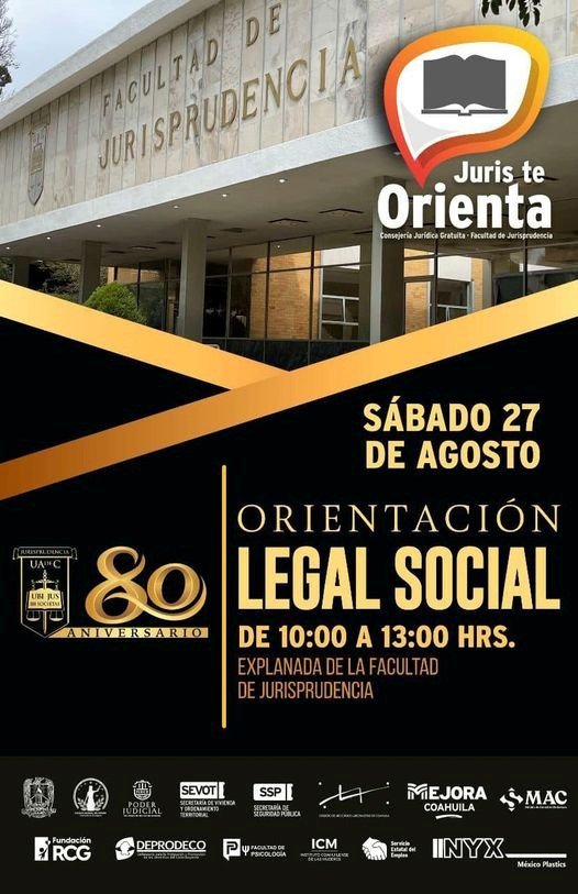 Con las jornadas de orientación legal social, la Facultad de Jurisprudencia de la Universidad Autónoma de Coahuila busca apoyar a aquellos que pasan por alguna situación legal y que requieren de asesoría, por lo que si tienes algún caso en particular que desees atender no dejes de asistir.