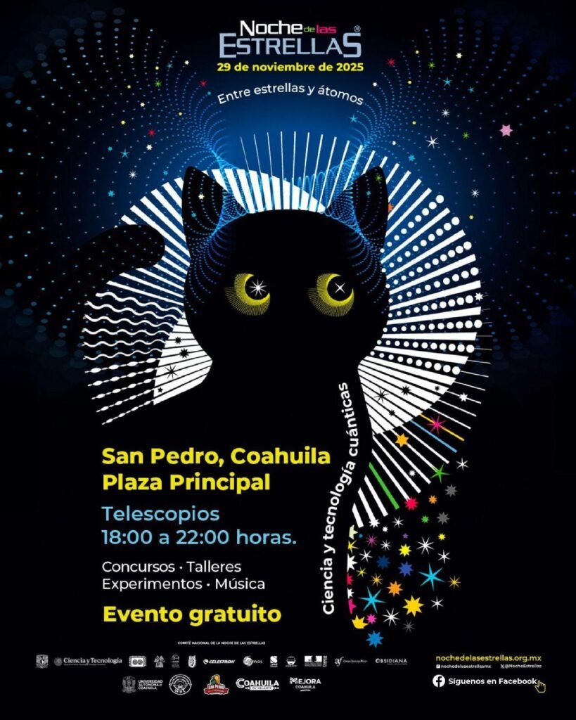 San Pedro, Coahuila.- La Noche de las Estrellas es el evento de divulgación científica más grande e importante en Latinoamérica. Es totalmente gratuito y reúne al público para observar el cielo y conocer más sobre la ciencia, la tecnología y el Universo a través de un gran número de actividades.