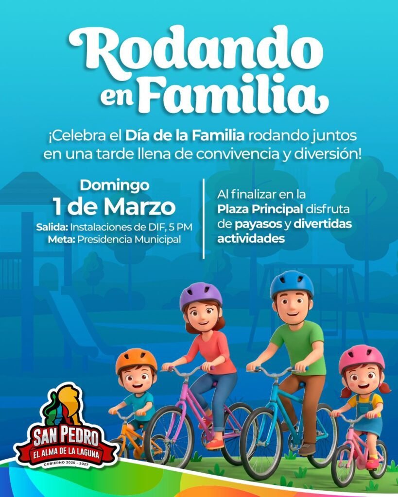 San Pedro, Coahuila.- El Gobierno Municipal el DIF San Pedro invitan a las familias a celebrar el “Día de la Familia”, el próximo domingo 1 de marzo, con una serie de actividades recreativas y de convivencia, diseñadas para fortalecer los lazos familiares y fomentar la unión comunitaria.