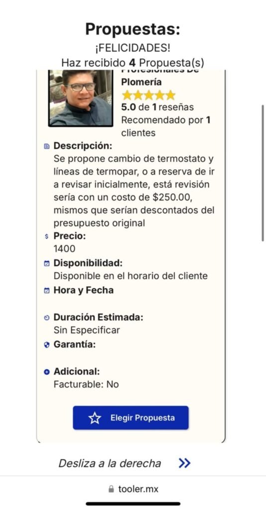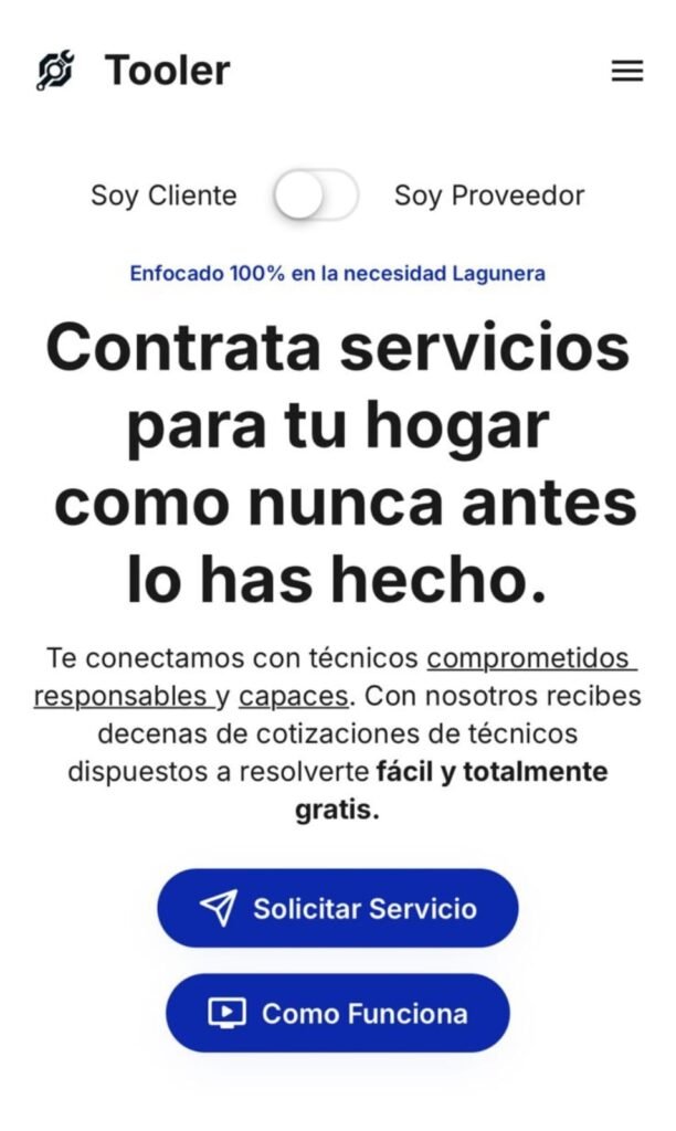 De tal forma que Tooler.mx llega como una alternativa donde el usuario publica su necesidad y en menos de 10 minutos recibe propuestas personalizadas de técnicos especializados.