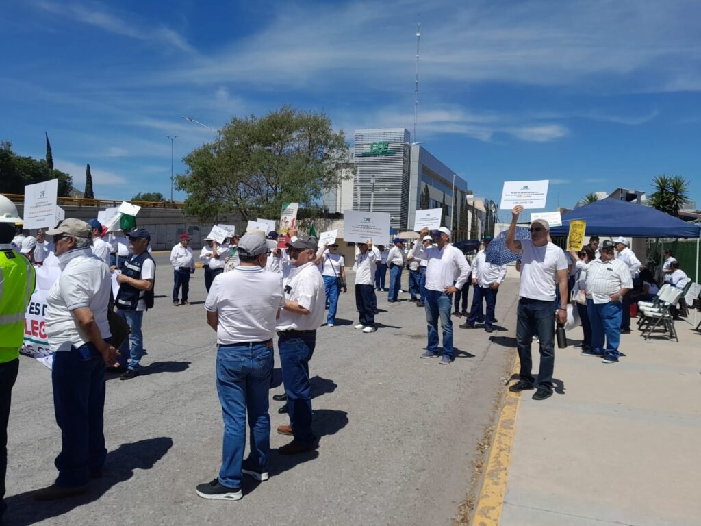 Gómez Palacio, Durango.– Un grupo de personas jubiladas y pensionadas de la Comisión Federal de Electricidad (CFE) se manifestó este miércoles frente a las instalaciones de la paraestatal, ubicadas sobre el bulevar Miguel Alemán, en rechazo a los efectos del decreto de reforma al artículo 27 constitucional, el cual —aseguran— genera incertidumbre en torno a sus ingresos y derechos adquiridos.