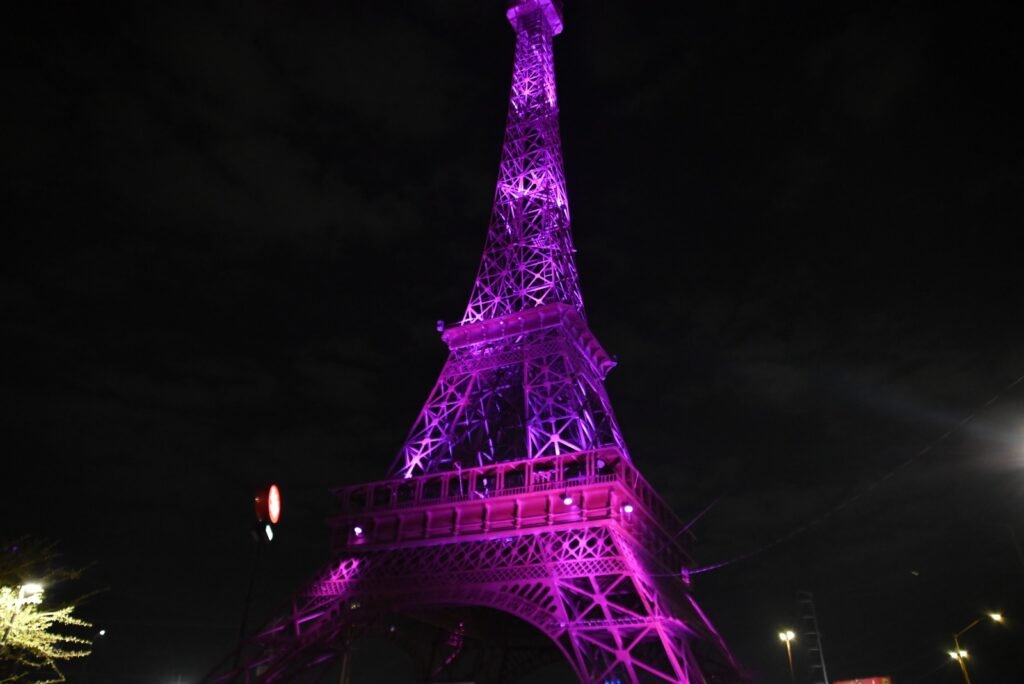 Gómez Palacio, Durango.- Con el propósito de crear conciencia y demostrar la solidaridad del gobiernos de Gómez Palacio con las mujeres que enfrentan el cáncer, además de recordarles a quienes están sanas la importancia de una detección oportuna, esta noche de viernes se llevó a cabo el encendido de la Torre Eiffel, iluminada con luz rosa, tras un conteo encabezado por la presidenta Betzabé Martínez.