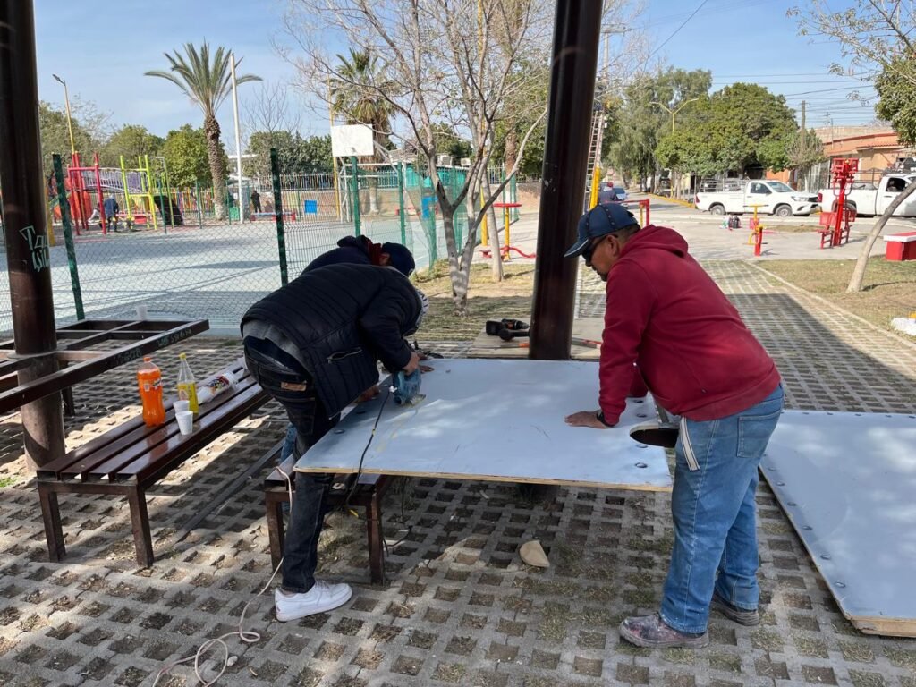 De manera simultánea, personal de Servicios Públicos rehabilitó bancas, juegos infantiles y aparatos de ejercicio, mientras que el área de Alumbrado Público atendió luminarias con fallas y necesidades de mantenimiento.