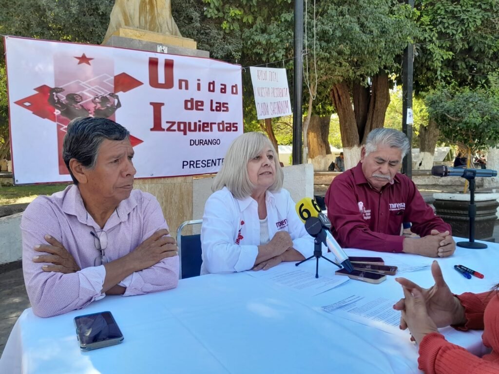 Gómez Palacio, Durango.- Integrantes de la llamada Unidad de las Izquierdas, fijaron su postura expresando su total apoyo a la presidenta de México, Claudia Sheinbaum, a través de diversas acciones que realizaran contra el intervencionismo de los Estados Unidos en el país.