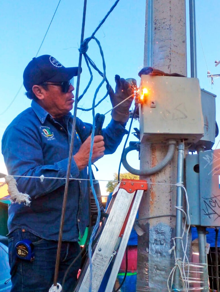 Gómez Palacio, Durango.- Por instrucciones de la presidenta municipal, Leticia Herrera Ale, se están llevando a cabo trabajos de rehabilitación de luminarias e instalación de cableado en los diversos parques y plazas del municipio, atendiendo los problemas que éstas presentan, para así brindar el servicio correcto a las familias que se encuentran a las aledañas o hacen uso de estos espacios recreativos.