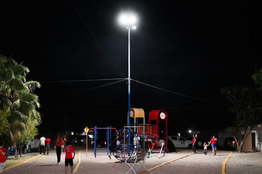 Con la coordinación de la directora de Servicios Públicos, María del Carmen Escareño Beltrán y el trabajo de Jacobo Babún Moreno, jefe de Alumbrado Público, estos trabajos incluyeron la colocación de luminarias en techumbres y parques, espacios que ahora cuentan con mejor iluminación, beneficiando a las familias que diariamente hacen uso de estas áreas.