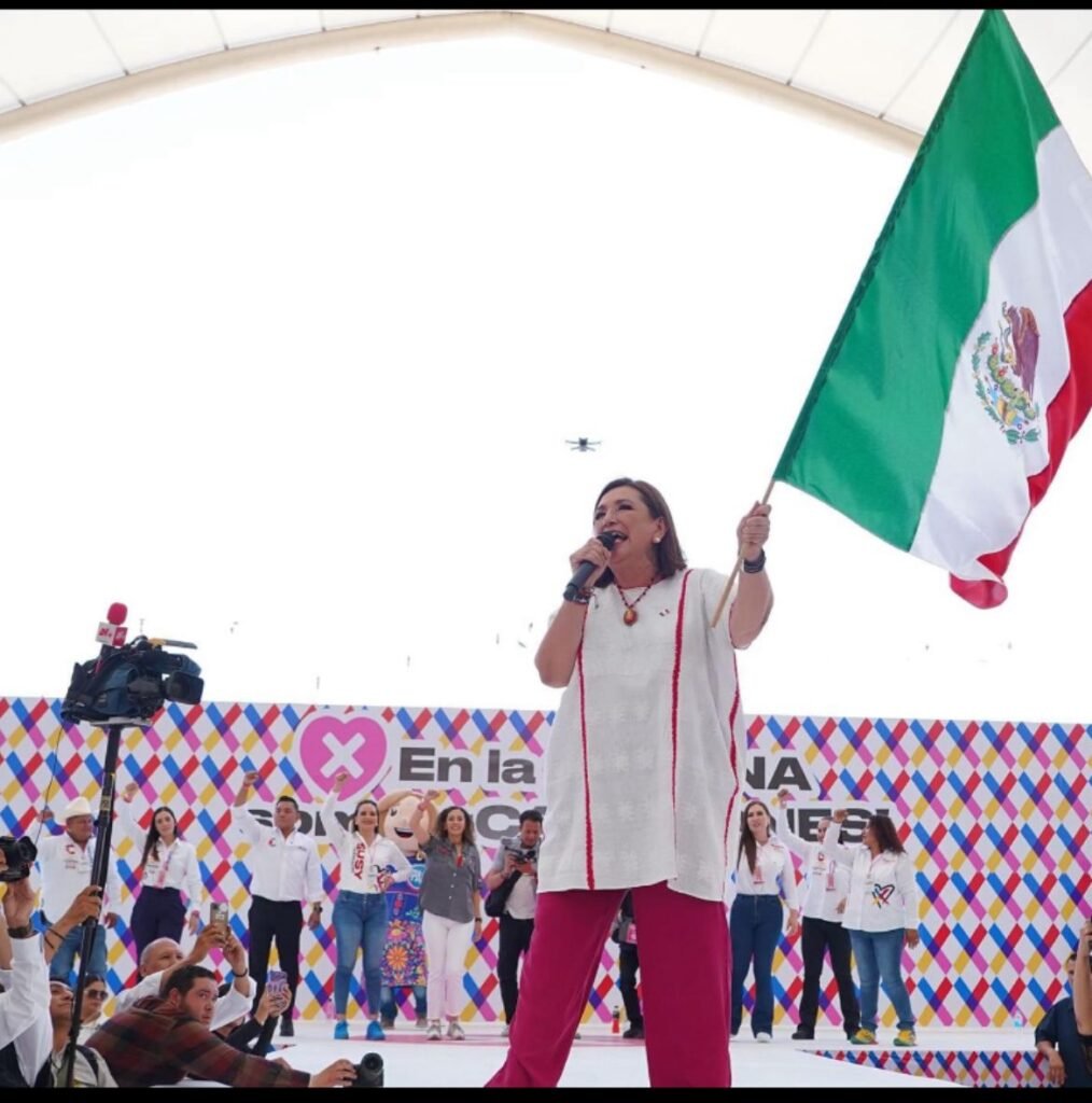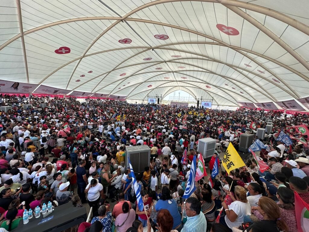 Gómez Palacio, Durango.- En un abarrotado evento con más de 15 mil personas en la Velaria de la Expo Feria de Gómez Palacio, y con más de 3 mil gentes que no pudieron ingresar al recinto por el cupo máximo, se arropó a Xóchitl Gálvez y a los candidatos locales Cristian Mijares, Brenda Calderón, Hilary Bueno y Daniel Santoyo, candidatos por la alianza PRI, PAN, PRD en Gómez Palacio.