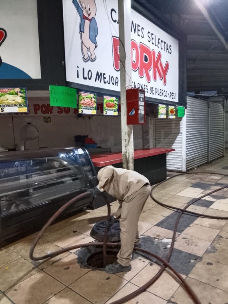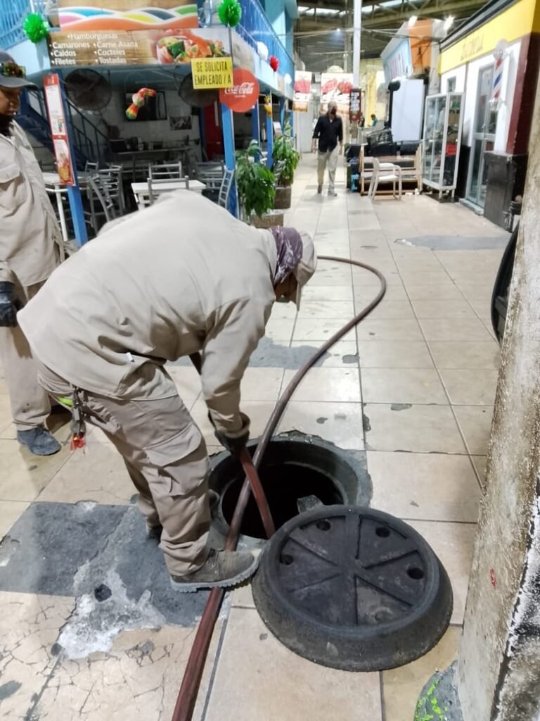 El gerente del organismo, Fernando Jiménez Garza, detalló que para estas labores se utilizó el camión váctor, equipo especializado que permite atender de manera rápida y eficiente problemas de acumulación de agua en el drenaje, evitando afectaciones a comerciantes y visitantes.