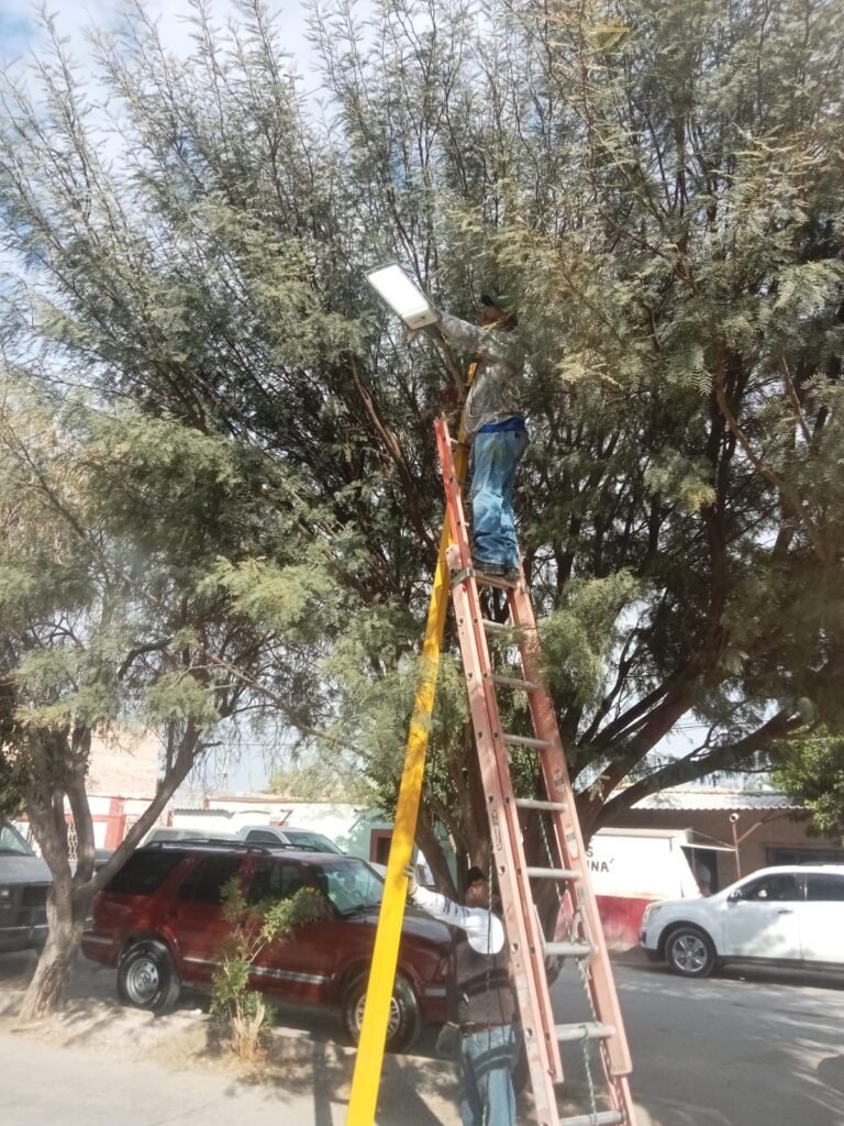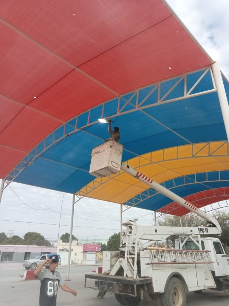 San Pedro, Coahuila.- En respuesta a la solicitud de los vecinos de la colonia Emiliano Zapata, el personal de Alumbrado Público, que dirige Jacobo Babún Moreno, efectuó la rehabilitación del sistema de iluminación en la techumbre y la plaza del sector.