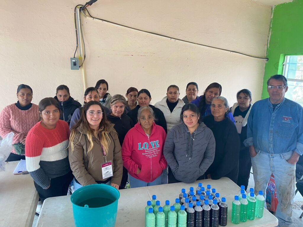 Padres de familia del ejido La Tehua aprenden a elaborar productos de limpieza para autoconsumo, ahorro y emprendimiento