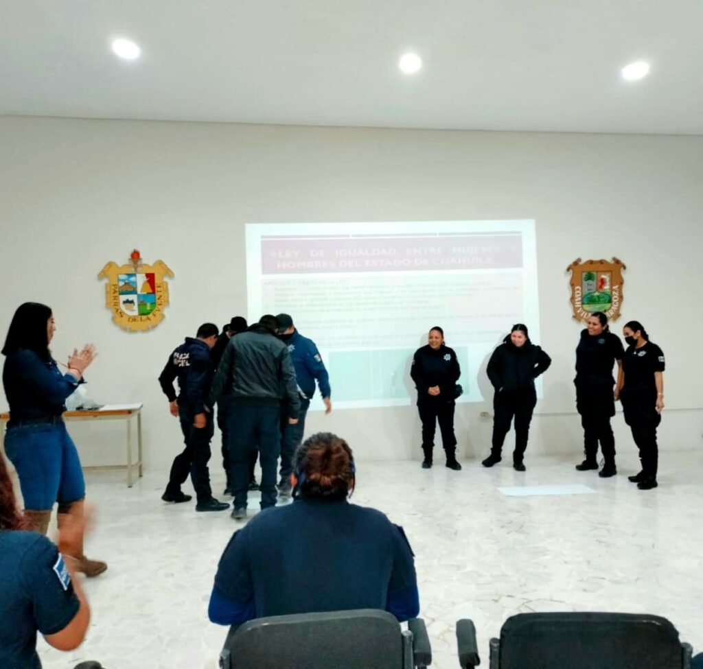 San Pedro, Coahuila.- Por instrucciones del Alcalde David Ruiz Mejia, por conducto de la Comandante Cinthya Elizabeth Villa Espericueta, el Agrupamiento Violeta de la Dirección de Policía Preventiva Municipal, asistió a la capacitación de perspectiva de género y violencia contra las mujeres, esto en la ciudad de Parras de la Fuente.
