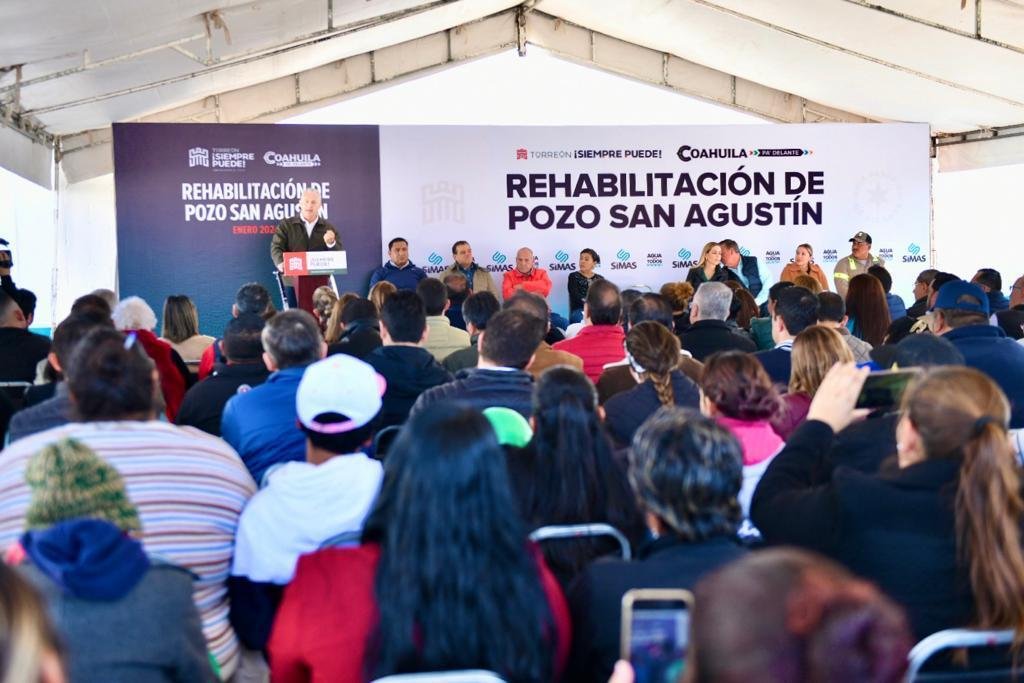 Torreón, Coahuila.- Con una inversión de 3.5 millones de pesos, el alcalde Román Alberto Cepeda González puso en operación el pozo San Agustín, el cual fue sometido a un proceso de rehabilitación en beneficio de más de 10 mil personas.