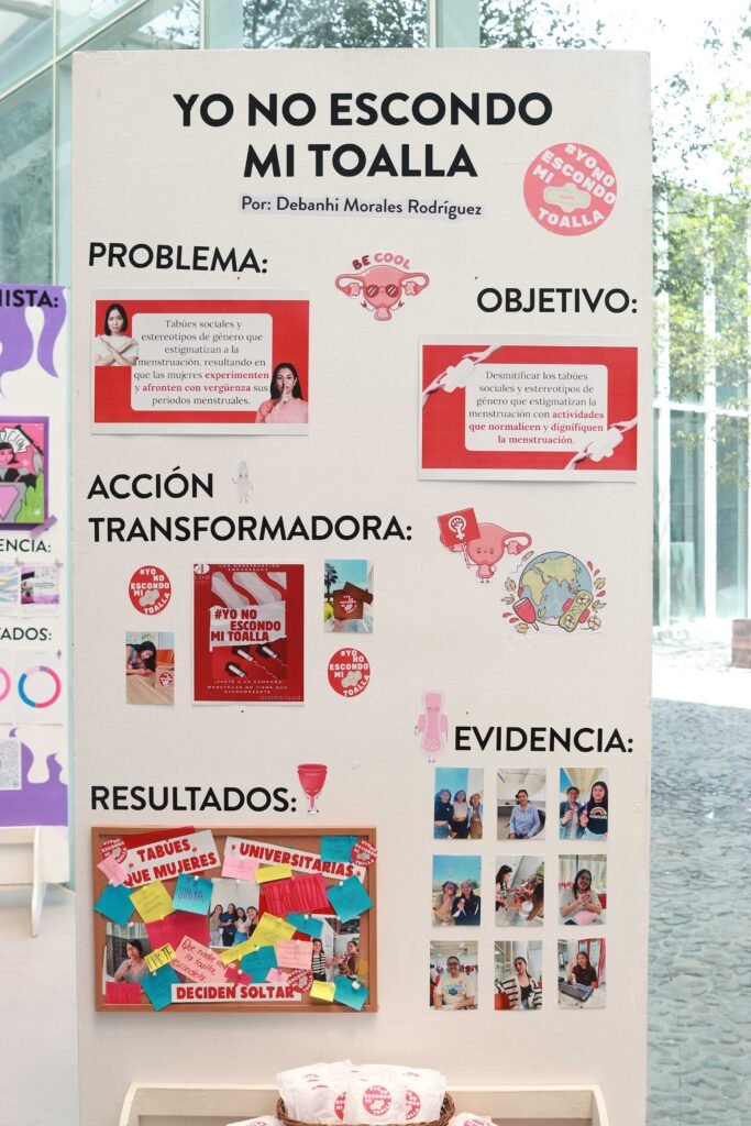 “Yo no escondo mi toalla”, por Debanhi Morales Rodríguez, por tabúes sociales y estereotipos de género que estigmatizan a la menstruación, provoca que las mujeres experimenten y afronten con vergüenza sus períodos menstruales; el objetivo es desmitificar los tabúes sociales y estereotipos de género que estigmatizan la menstruación con actividades que normalicen y dignifiquen la menstruación, la acción sería una campaña de concientización.