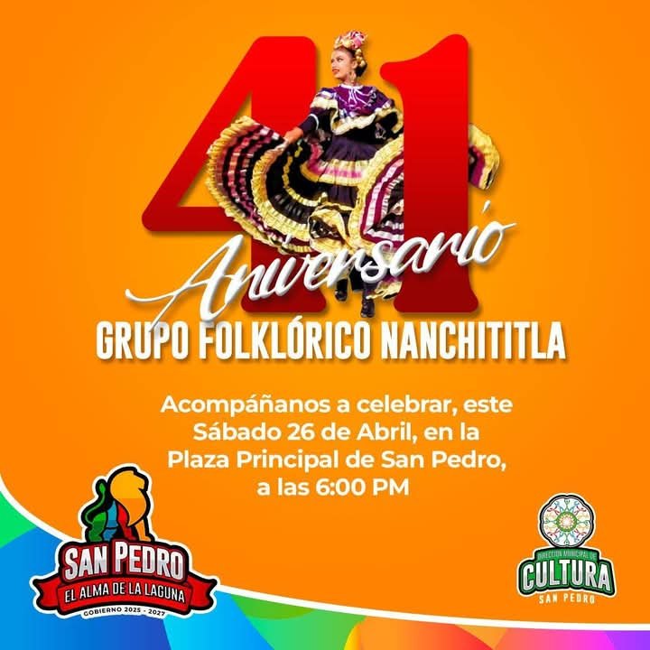 Para cerrar el mes con broche de oro, el sábado 26 de abril se celebrará el 41 aniversario del grupo de baile folclórico «Nanchititla». La presentación se llevará a cabo en la Plaza Principal, iniciando a las 6:00 de la tarde.