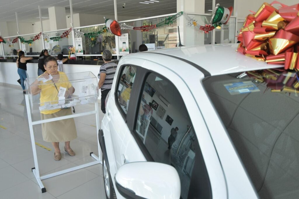 Primeros ciudadanos depositan su recibo de pago para participar en sorteo por un auto del SAPAL